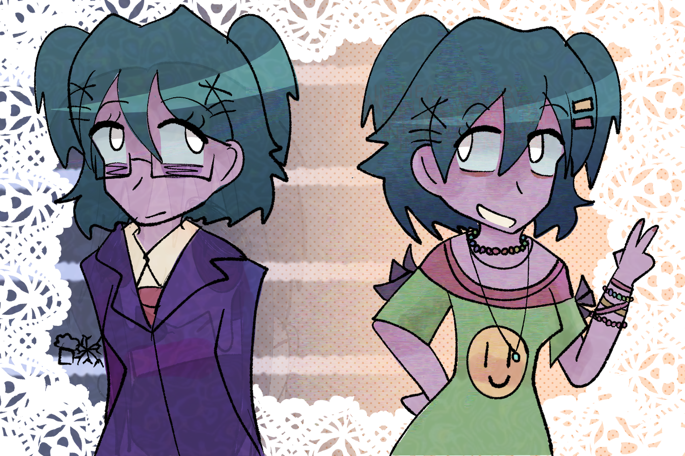 This one was made to be a t-shirt, for me and me only. But not this version!!! I'm not giving you the version for the t-shirt cuz that's for me and me only and I'm afraid of someone stealing it, specially if Lacey gets popular again because It's not my first time dealing w people turning my art into merch... So that's why, you're just getting this one, the messy one that even if it gets turned into merch atleast you'll see my watermark LOL THIS ONE WAS SO FUN TO DO!!!!!1 ANNDDD these one's w my babies Clarise and Liam!!! They're for a fanfic i'm making, which I'll share the cover now... ANDD IT'S ANOTHER LACEY GAMES FANFIC!!! WOHOO!! This one's about our beautiful Clarise and Liam, having to deal with my girl Rocío Yani being a grumpy ass girl because she's mentally ill and just angry with the world 24/7... Anooother one for artfight!! Visit her page here!! I'll post the rest of all my attacks later here!! For 2025's artfight! visit her page here!! These are both for a video i'm gonna link to when I finish it!! Almost forgot about these!! But finally, here they are!!! FOR PRIDE MONTH!!!!!! REMEMBER THE PEOPLE WHO PAVED THE WAY TO YOUR RIGHTS, STAY SAFE AND DON'T LET ANYONE SILENCE YOU FOR BEING WHO YOU ARE!!!!!! Profile picture, banner and watermark and for my youtube channel! Ahh, Love Ward, another one of Oster Project's masterpieces if I'm not wrong. I got obsessed with how cute Miku looked there ever since I found a sticker of her on a kiosco Like I said on the Rocío fanart page, this was made as a pfp for a tumblr blog. There's a Grace one too! For my fanfic againnn!! I love love love this one...Rocío smiling...yessss... Done to try Krita!! Couldn't stand medibang anymore.. Another Lacey one guys!! LACEYYYY!! yayyy Practicing adults! Did you know I made those to be just doodles?? Lol! I ended up making it about my fanfic again lolzies :3 I was trying to practice making adults look like adults, I think I did it right! I was trying new poses, went beautifully Done to try craiyons!! More art for my fanficcc!! This is the wattpad cover for my fanfic "You can recover! I STILL LOVELOVE THIS ONEEE!!!!!!!! AAA LOVE YOU MEDEA!! I realized a bit too late the leg was wrong...but oh well!! Stuff that happens... Sooo this is a remake from this drawing that came out of this old video of mine!! A two time meme animatic! Done w mlp stickers LMAO Lacey executable error1 came out in those days, I was SOSOSOSO excited to see Rocío again!! and that's all for this year!!